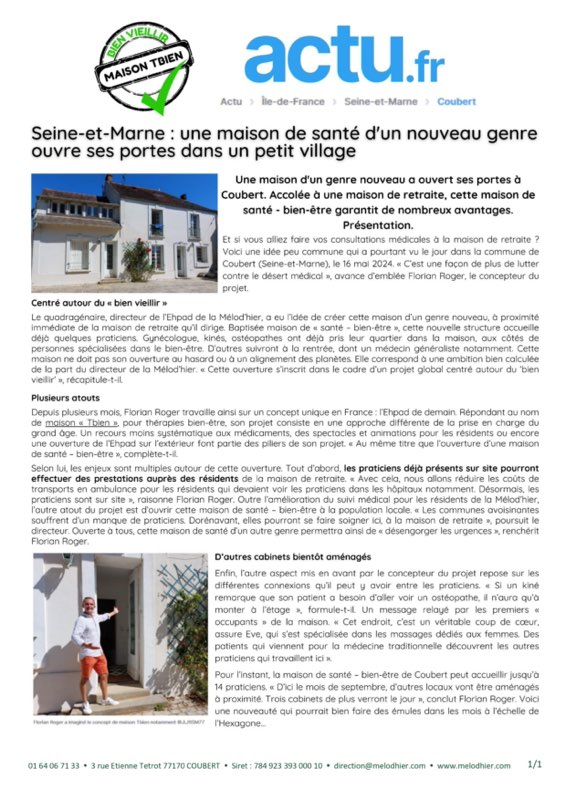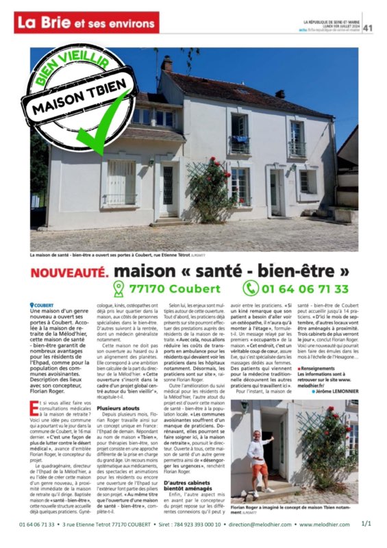 ** Venez rejoindre la solution Tbien : la maison sante bien être est adossée à un EHPAD de 90 lits ..