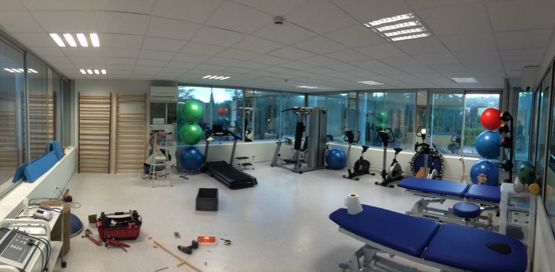 Un espace est dédié uniquement aux appareils de rééducation côté baie vitrée,