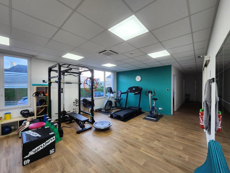 Il dispose de 3 salles de consultations de 12 m2 avec point d'eau et ordinateur ainsi qu'une salle de gym de 22 m2.