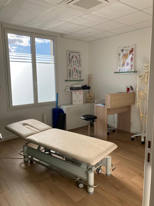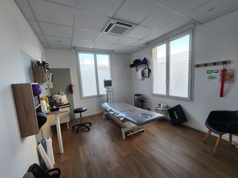 Nous sommes 2 kinés installés dans un cabinet moderne et spacieux (160 m²), lumineux et climatisé, situé en centre-bourg avec parking.