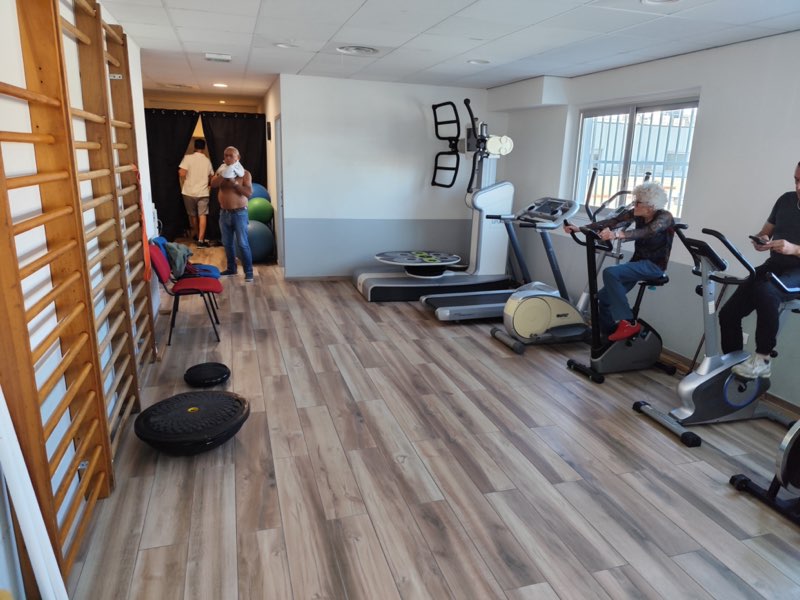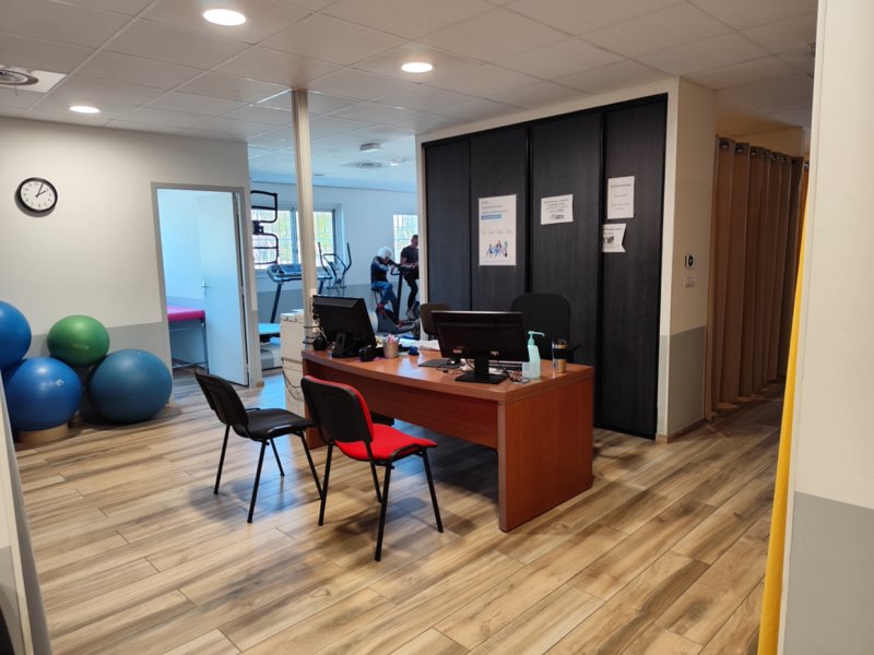Matériels : 3 tables de massages, 2 lampes à IR, un trampoline, 6 vélos, un appareil à US, un marche pied à résistance, espaliers. Logiciel Vega 5.