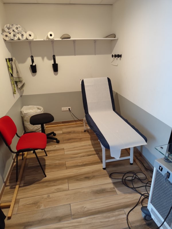 Vous disposerez d'une grande salle de soins indépendante, avec vestiaire attenant, espalier et matériels.