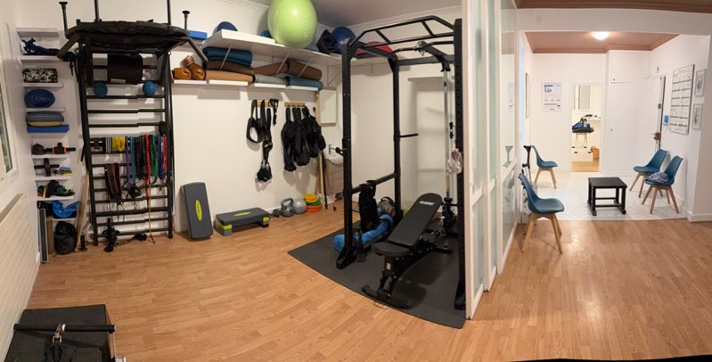 Le cabinet possède 2 salles de traitement et un plateau technique spacieux avec tables électriques, ondes de choc et pressothérapie BTL, matériel de fitness dernière génération MATRIX: vélo, vélo elliptique, presse, doubles poulies, etc..