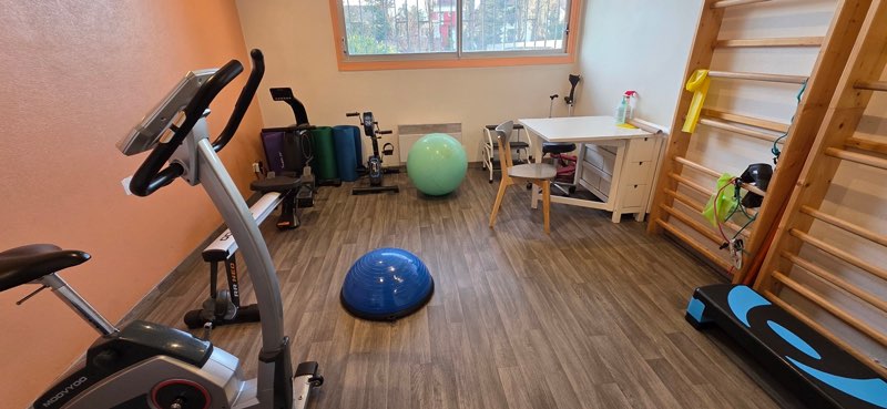 Les salles son équipées de table électrique, espaliers, steppers, vélo , compex, matériel de proprioception , appareil YSY pour rééducation périnéale, ultra-sons....