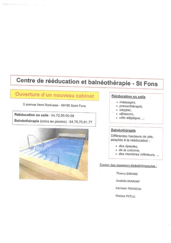 Vaste cabinet avec chacun sa salle de prise en charge et chacun son plateau technique equipe,en plus d une autre grande salle (rameur,velo,velo elliptique,appareil de muscu complet,ballon de gym ,tapis de sol,etc...) . Larges possibilites d organisation de son travail.Possibilite de loger sur place dans un premier temps et gratuitement.Jeunes diplomes bienvenus. Nhesitez pas a nous tel au 03 21 36 56 43 ou 06 75 74 18 73. Possibilite d association ulterieure.