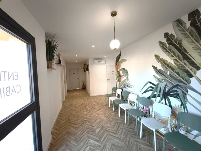 Le cabinet est composé d'une large salle de rééducation (70 m2) et de 6 cabinets de consultations individuels.