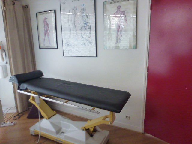 Soins uniquement au cabinet actuellement: 2 salles de soins, grd plateau de rééducation, salle de repos