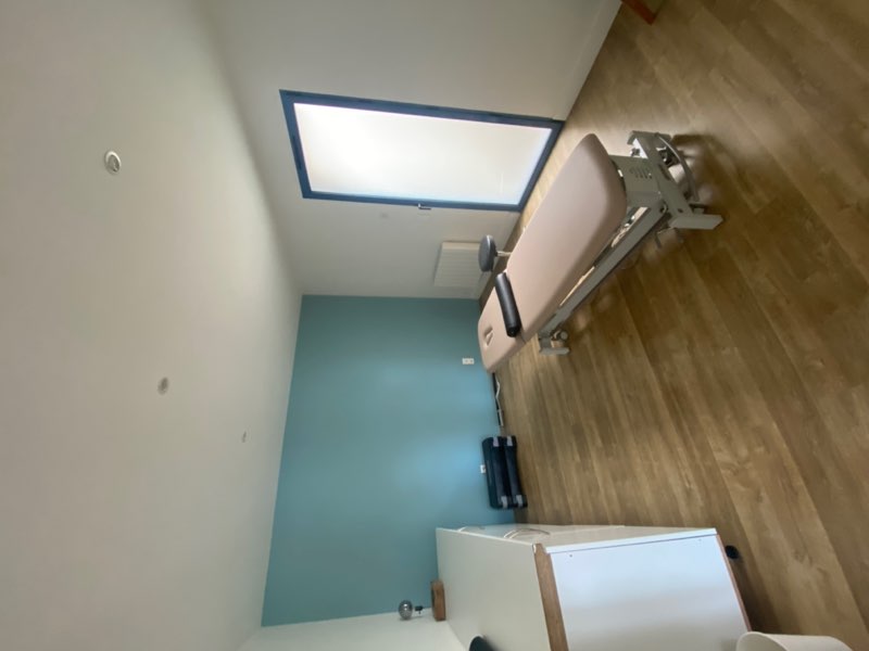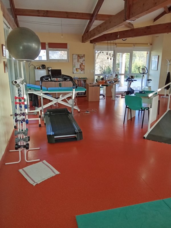 -Cabinet de 40m², comprenant une grande salle/gymnase + une petite salle, permettant de garder 2 patients en même temps en fonction de la PEC.
