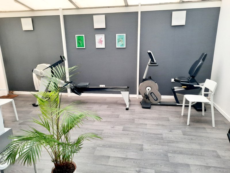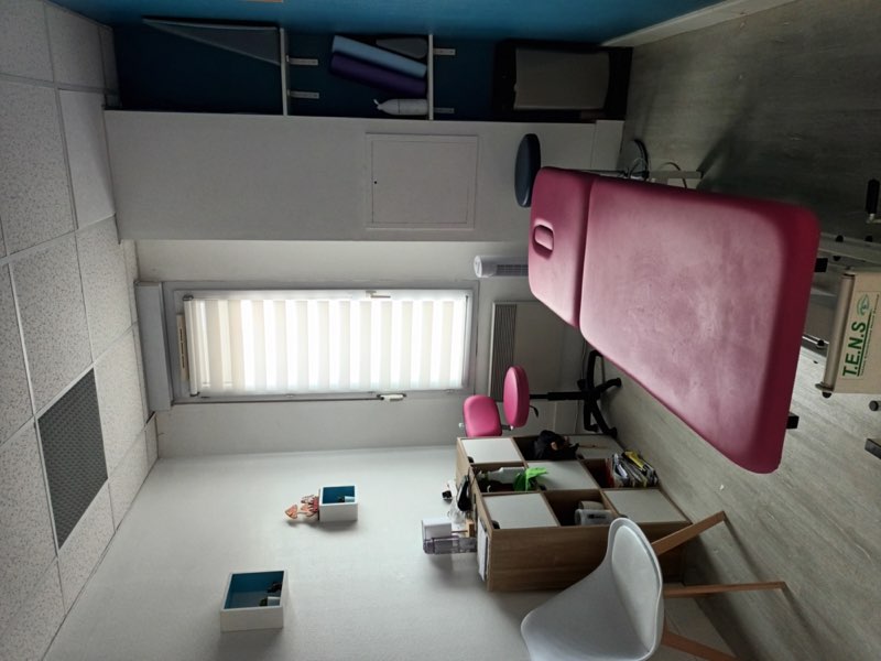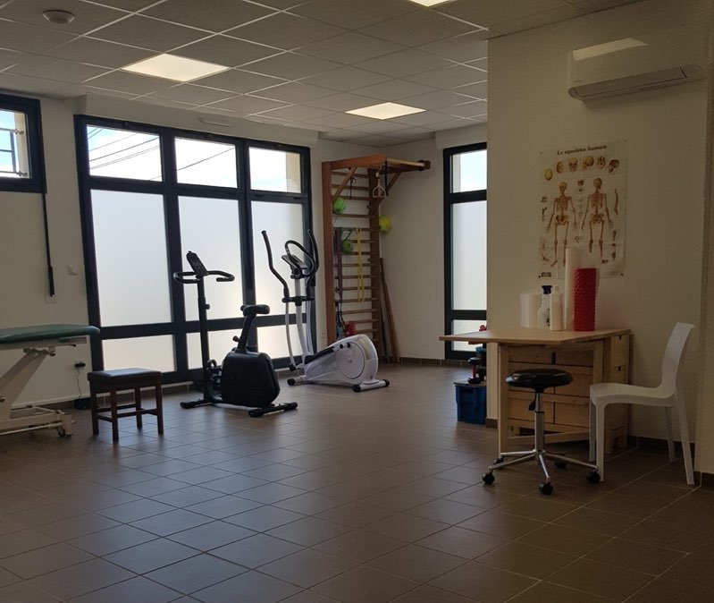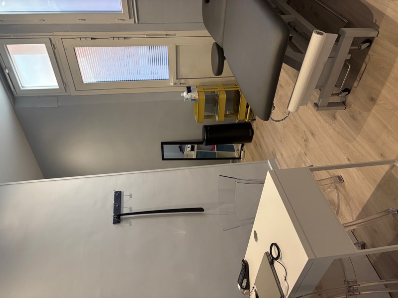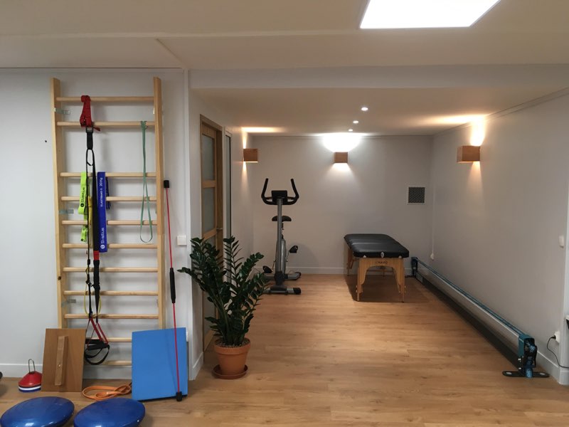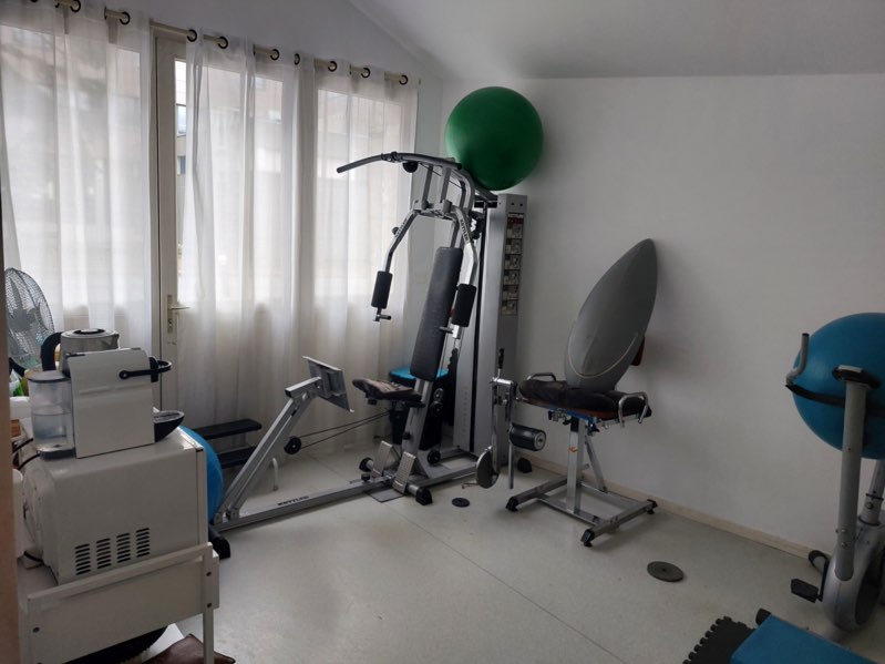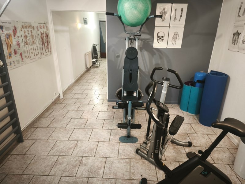 Je dispose d'une grande pièce de soin pour accueillir et traiter les patients , d'une pièce de physiothérapie et d'une salle de sport.