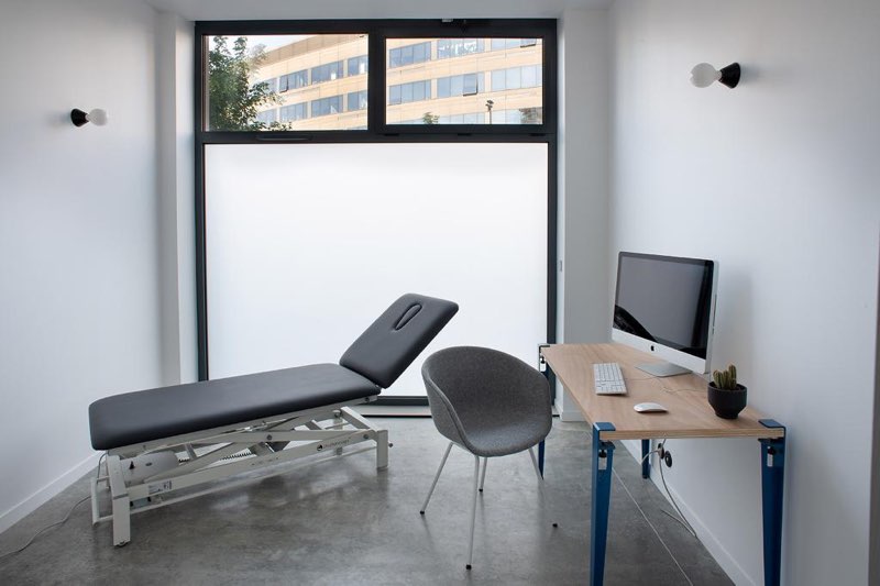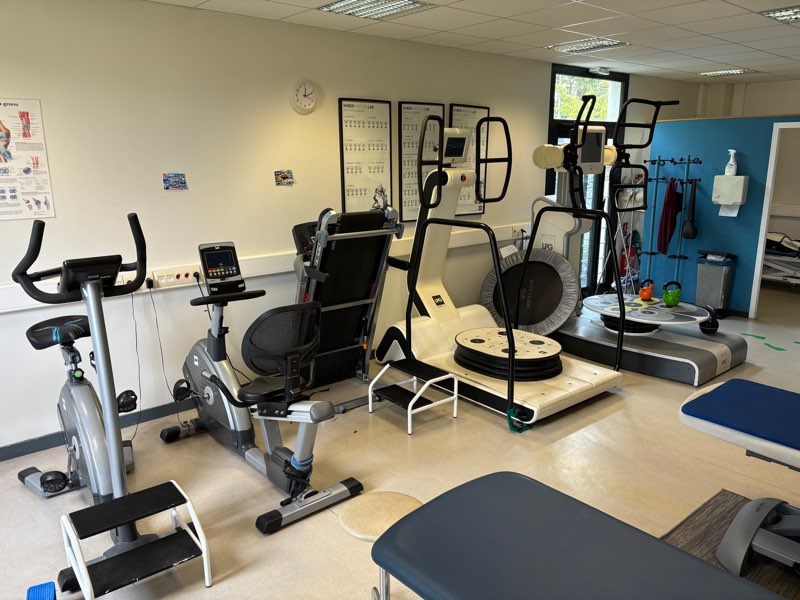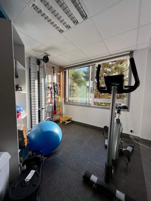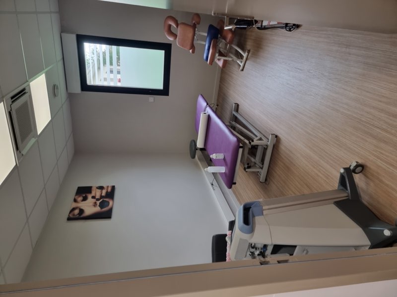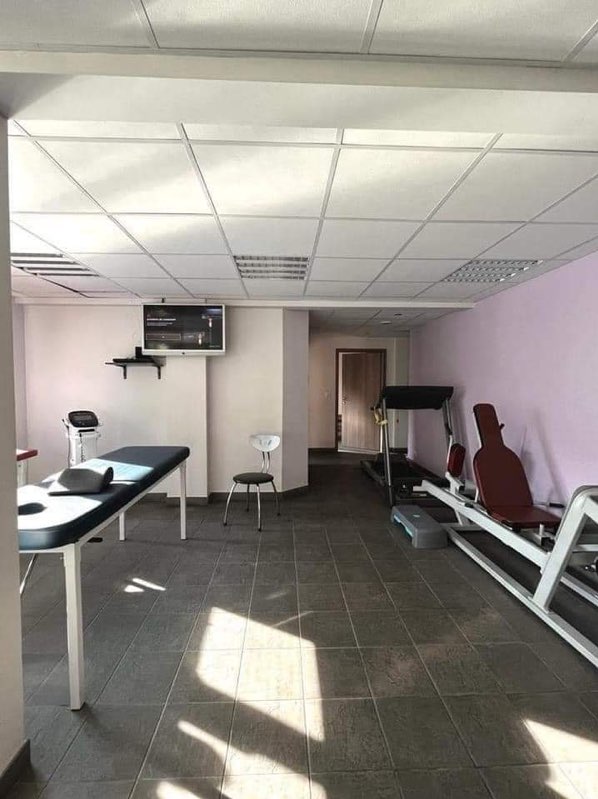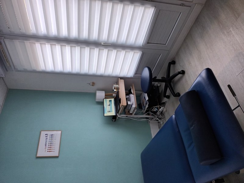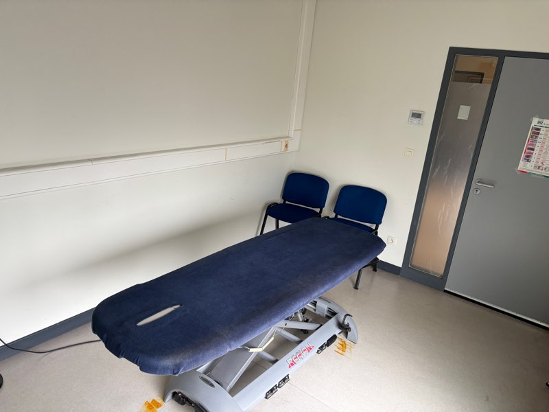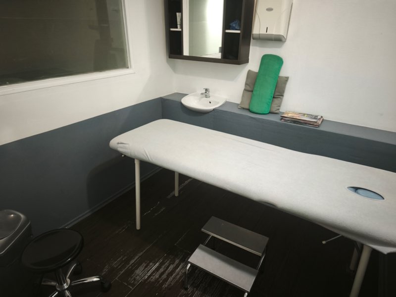 Je dispose d'une grande pièce de soin pour accueillir et traiter les patients , d'une pièce de physiothérapie et d'une salle de sport.