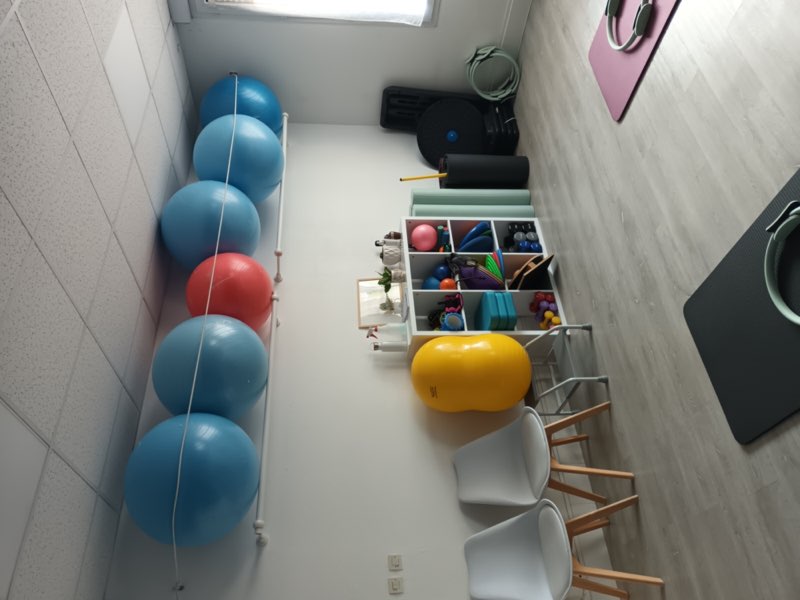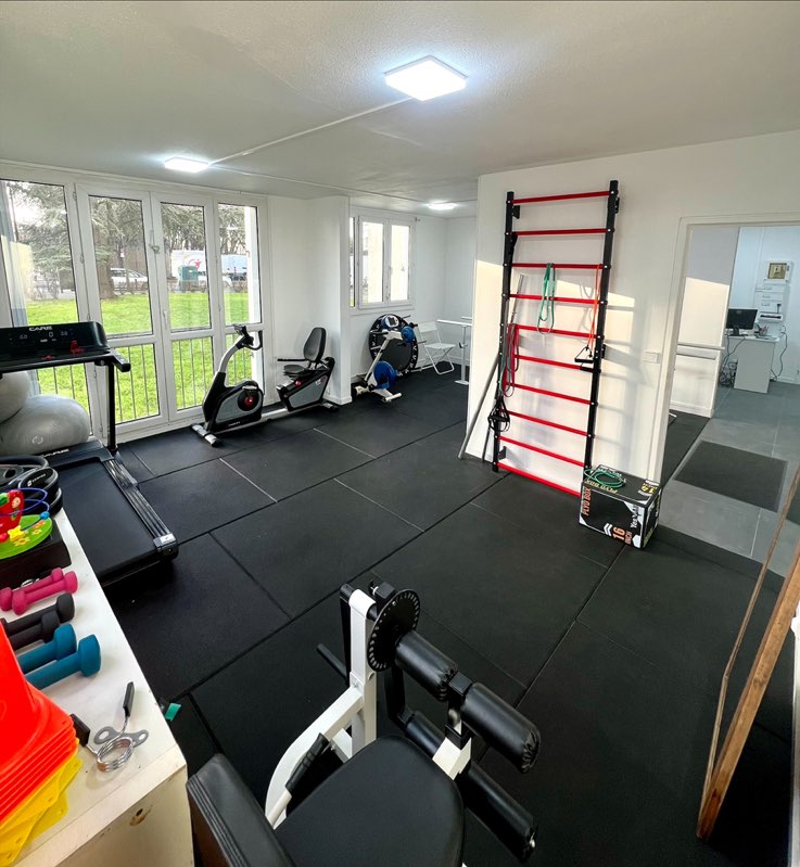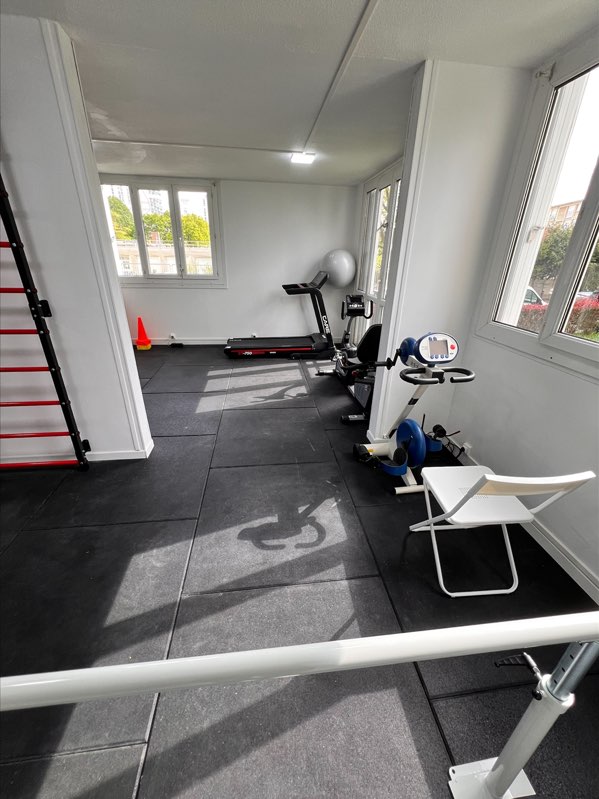 - 2 salles de soin individuelles + 1 grande salle avec tout le petit matériel de gym (ballons de toutes tailles et de tous poids, tapis, élastiques, espalier, haltères, step, etc...)