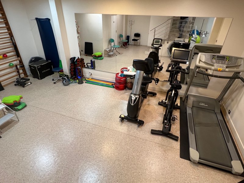 • Salle de sport complète : espalier, barres de marche, vélo, tapis de course, MotoMed, appareil de renforcement quadriceps/ischios