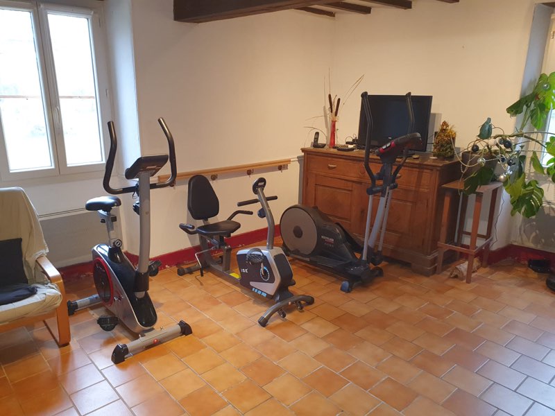 Gymnase, tapis de marche, vélo, vélo elliptique...