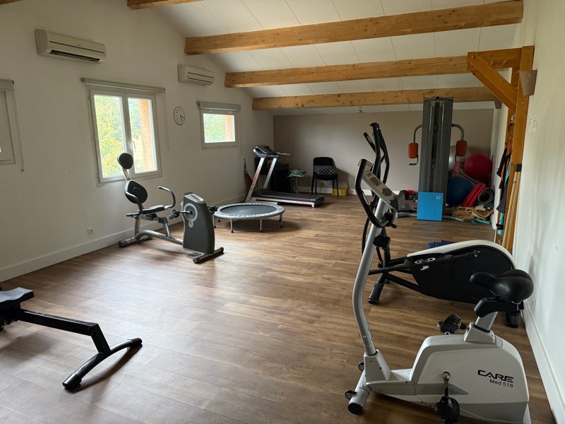 - d'un plateau technique avec vélo, cage à squat, tapis de course, haltères, kettlebell, etc....