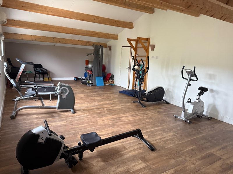 Petit plateau technique avec vélo, vélo elliptique, chaise Q, espalier, ondes de choc, LPG, slimbeam.