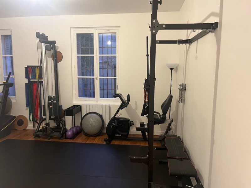 1 salle de travail individuel avec table electrique et bureau et 1 salle avec tapis de marche, velo, , stepper et petits matériels ...