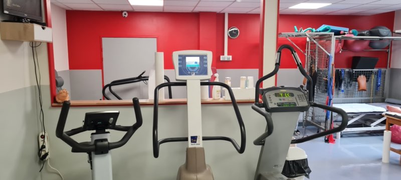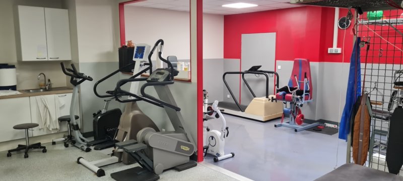 Les salles son équipées de table électrique, espaliers, steppers, vélo , compex, matériel de proprioception , appareil YSY pour rééducation périnéale, ultra-sons....